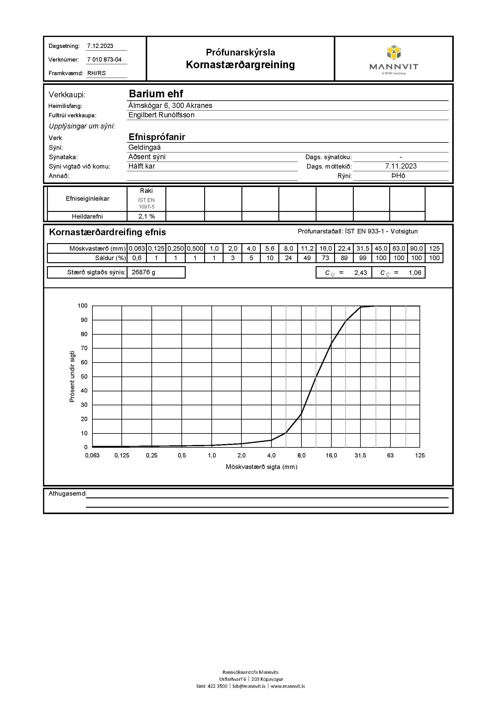 Jarðefnanáman okkar er einstök uppspretta af hágæðaefni fyrir mannvirkja- og vegagerðarframkvæmdir. Um er að ræða gæðaefni sem staðfest hefur verið með rannsóknum hjá viðurkenndum aðilum. Getum við því tryggt að efnið okkar uppfyllir ströngustu staðla og kröfur iðnaðarins.
